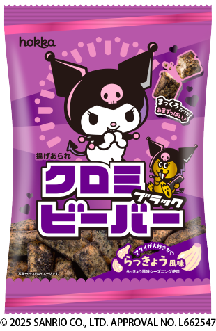 サンリオキャラクターの「クロミ」のように真っ黒な揚げあられは、クロミの好物らっきょう風味!ツンとあまずっぱくやみつきになる味わいです。