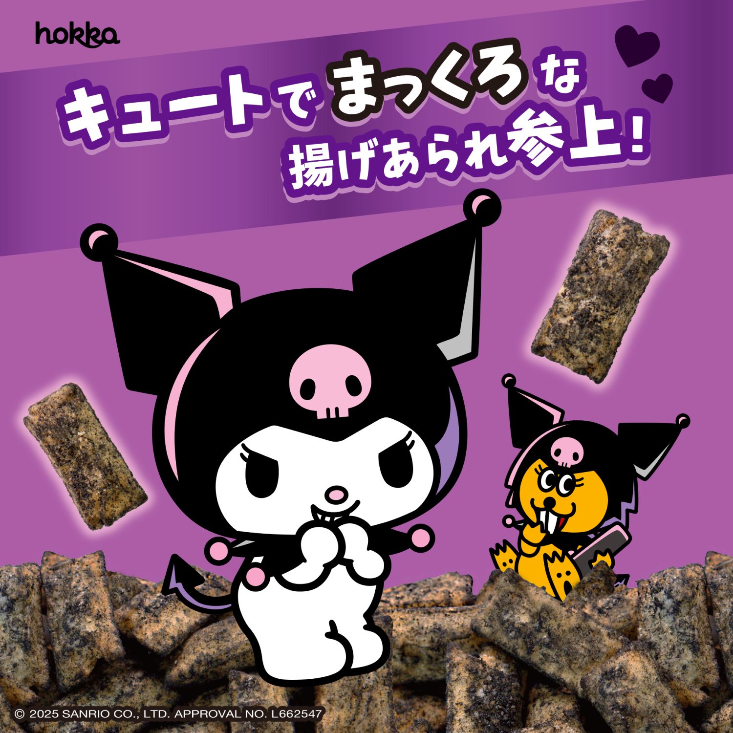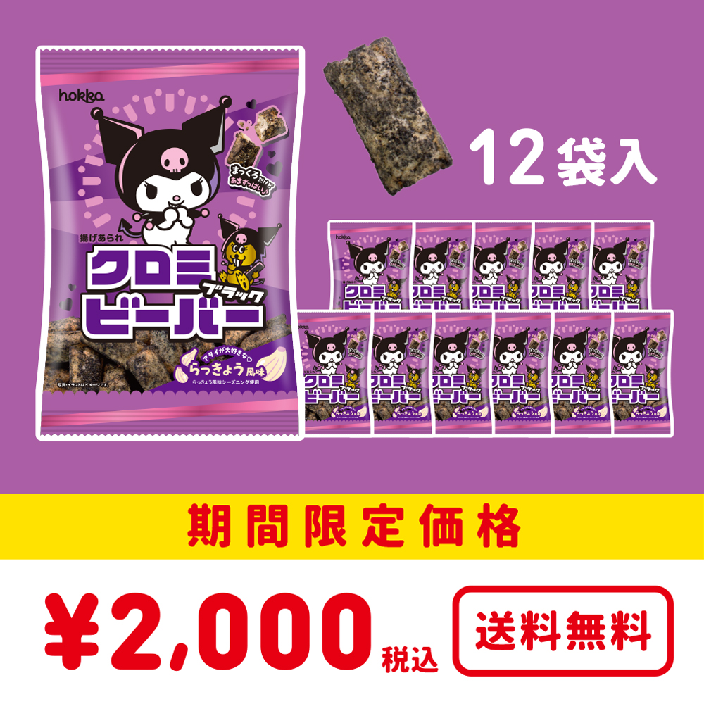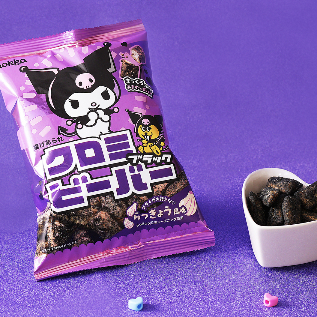 ●クロミのように黒色になった揚げあられは、クロミの好物であるらっきょう風味です。