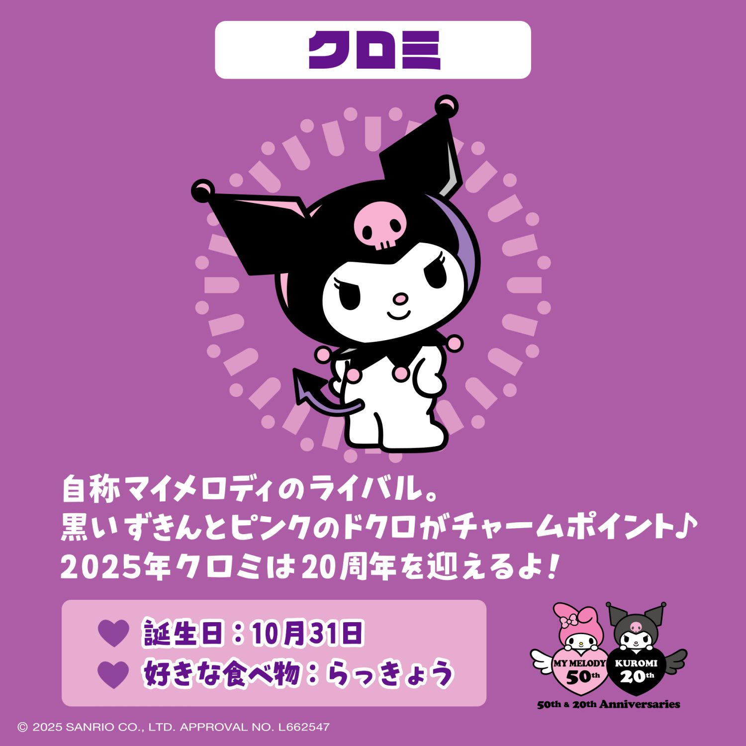 ※クロミ・・・サンリオキャラクター。「マイメロディ」のライバル的存在です。